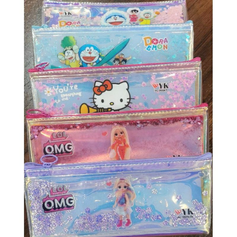 Biasanya beberapa alat tulis yang disimpan pada tempat pensil adalah pensil, pulpen, penghapus dan penggaris.